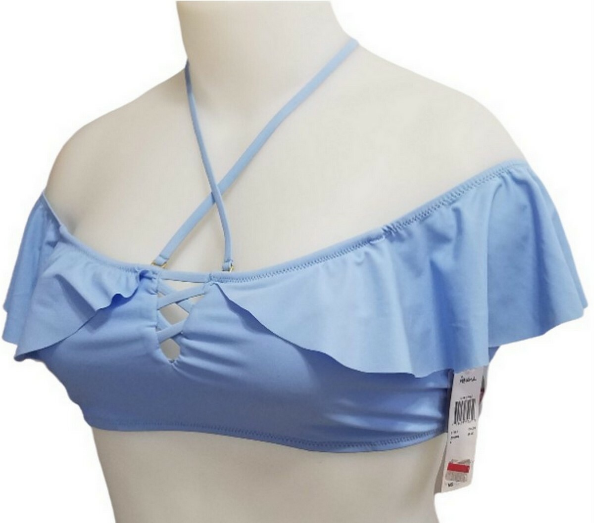 Raisins Juniors Women Barbados Off-The-Shoulder Ruffled Lace-Up Bikini Top (L)