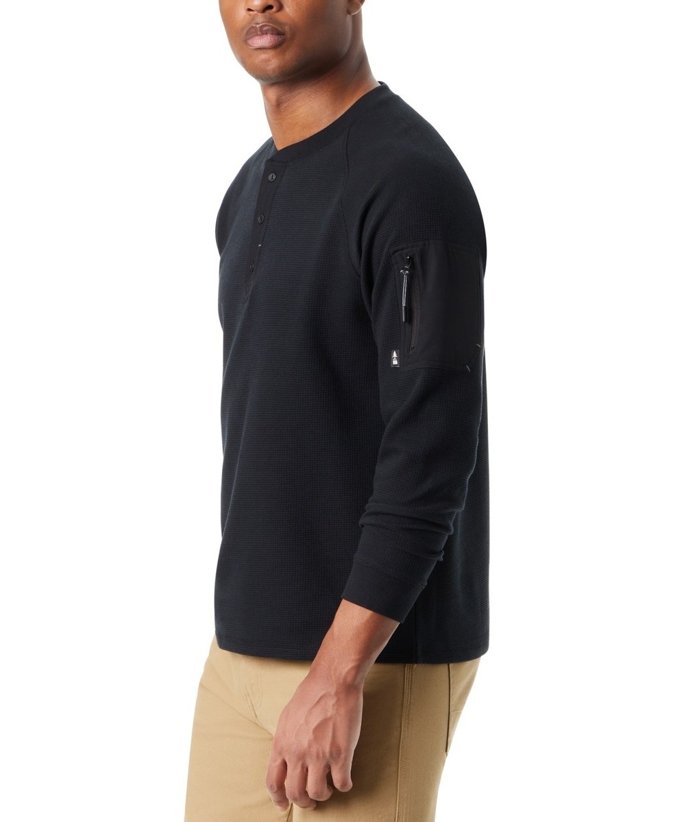 Bass Outdoor Men's Relaxed Fit Performance Thermal Long Sleeve HenleyExperience comfort and versatility with this performance thermal Henley from BASS OUTDOOR. Perfect for layering or wearing alone, enjoy a relaxed fit and unmatched performance in every situation.Product FeaturesImportedRibbed-knit Henley neck; three-button placketLong sleeves; ribbed-knit cuffs4-way stretch tech-woven panels at the yokeSecurity zipper sleeve pocketRelaxed fitKnit: cotton/polyester; woven: polyester/spandexMachine washable