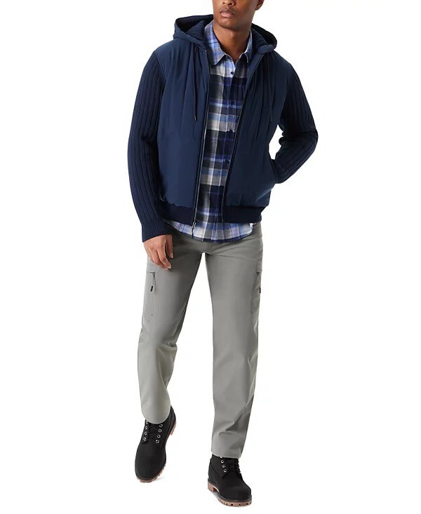 Bass Outdoor Sweater Jacket Mens XL Navy Blaze Mixed Media Zip-Front Hooded