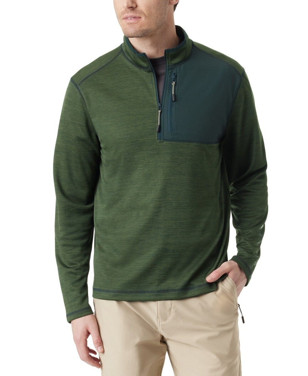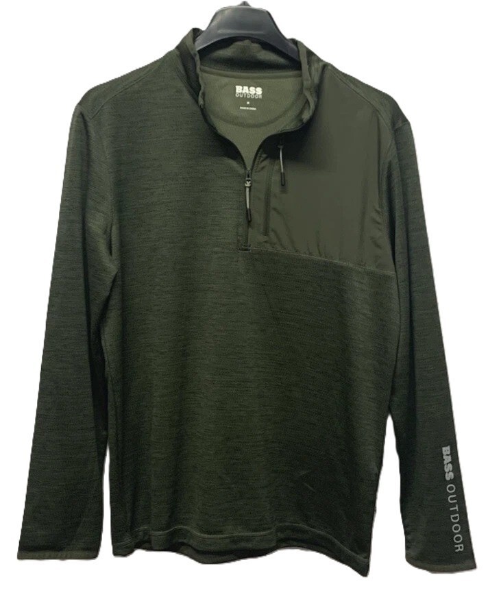 Bass Outdoor Men's Quarter-Zip Pullover - Scarab Forest Night Green-Medium