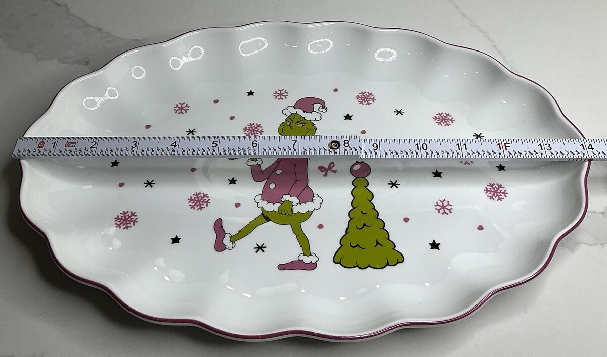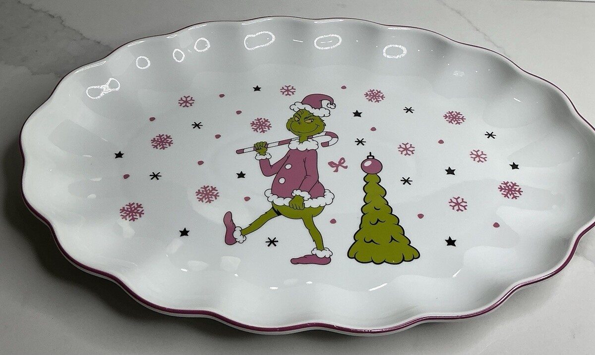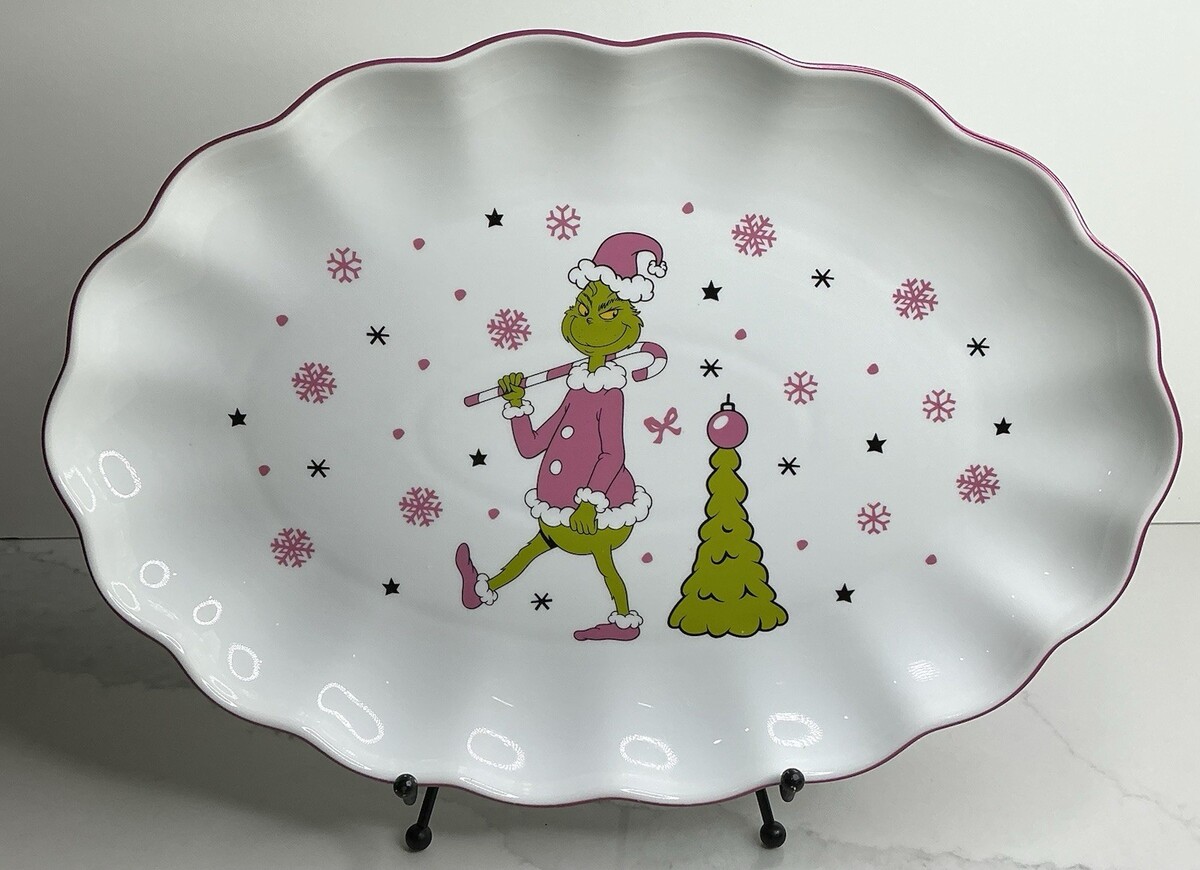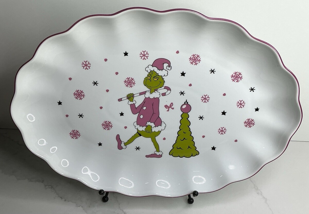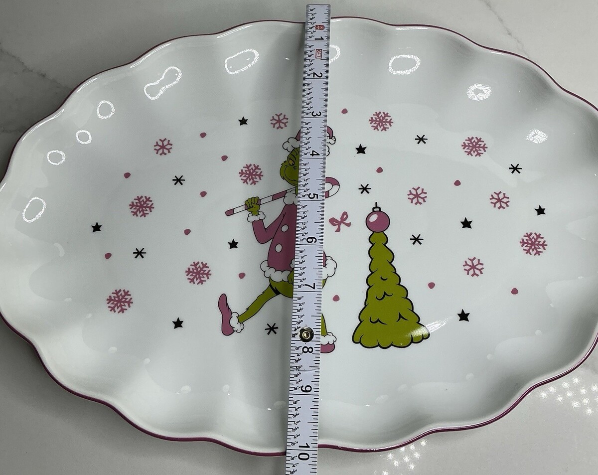 Dr Seuss How The Grinch Stole Christmas Pink Green Oval 14? Meat Serving Platter, new