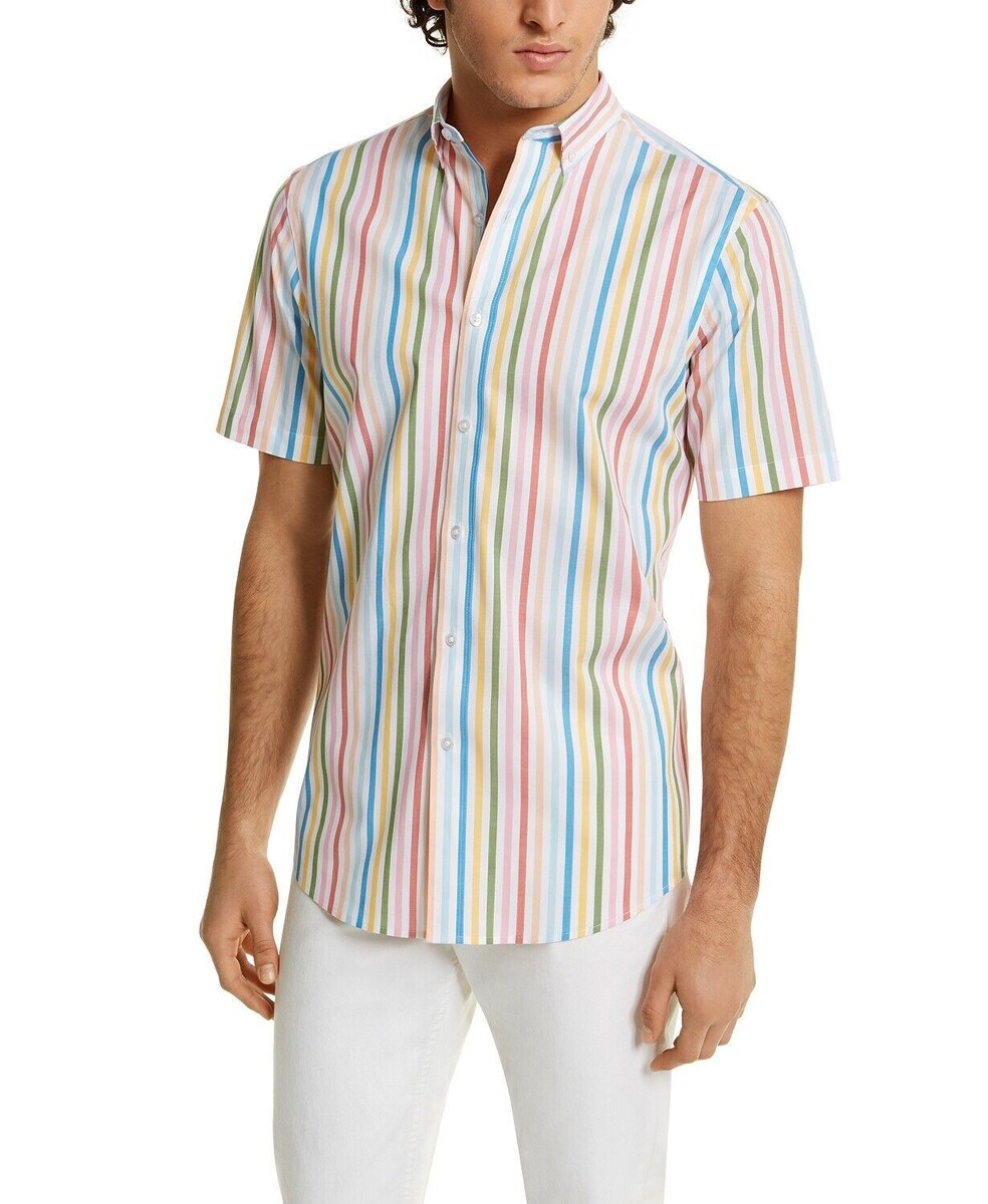 Club Room Men's Stretch Cotton Blend Stripe Shirt Rainbow Combo-Medium