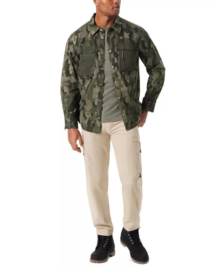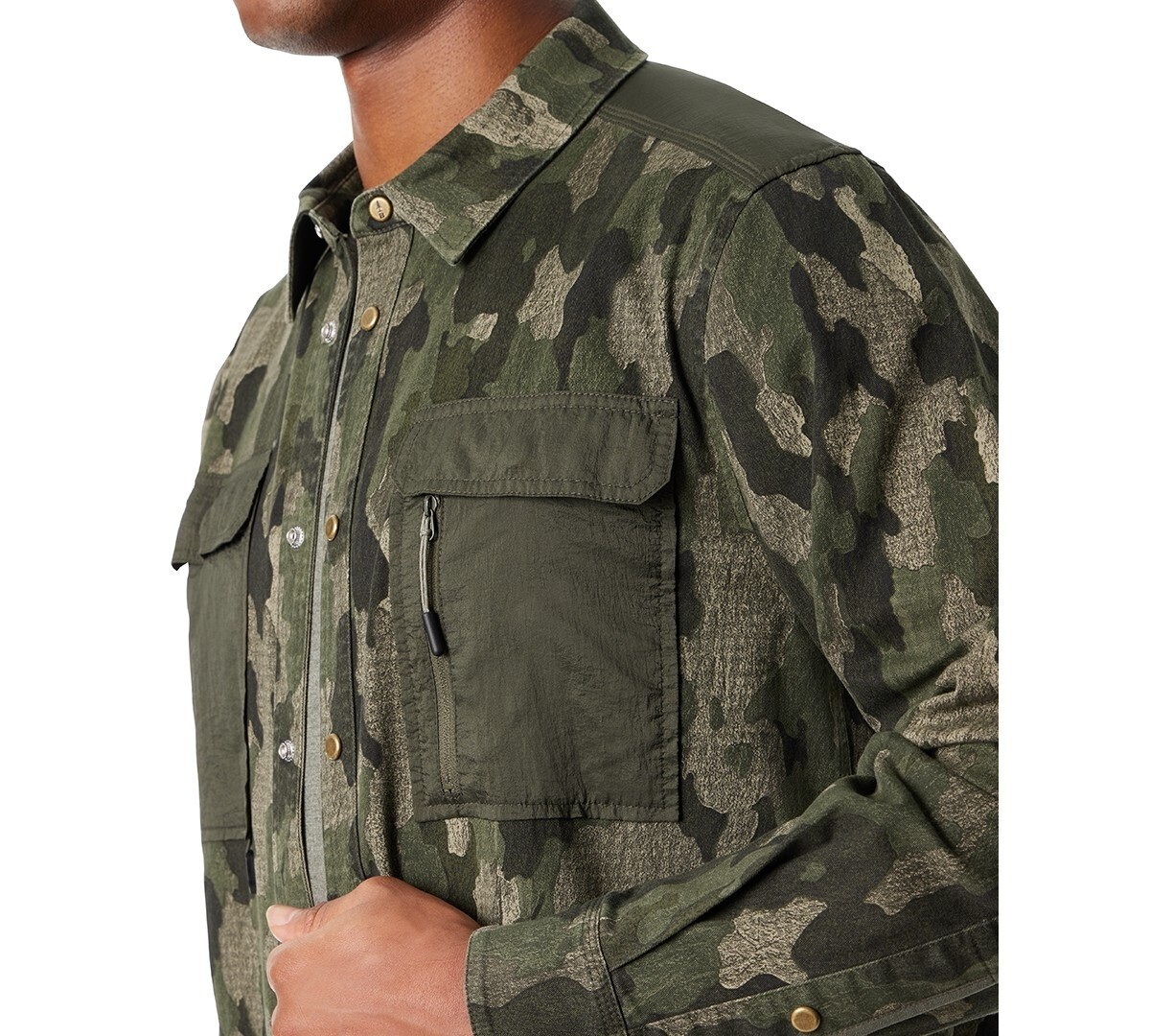 Bass Outdoor Shirt Jacket Men's Medium Camo Green Relaxed Fit Worker Stretch