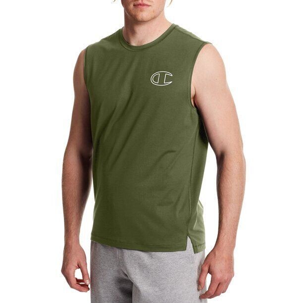 Champion Men's Script Tank Top in Cargo Olive-Size Small