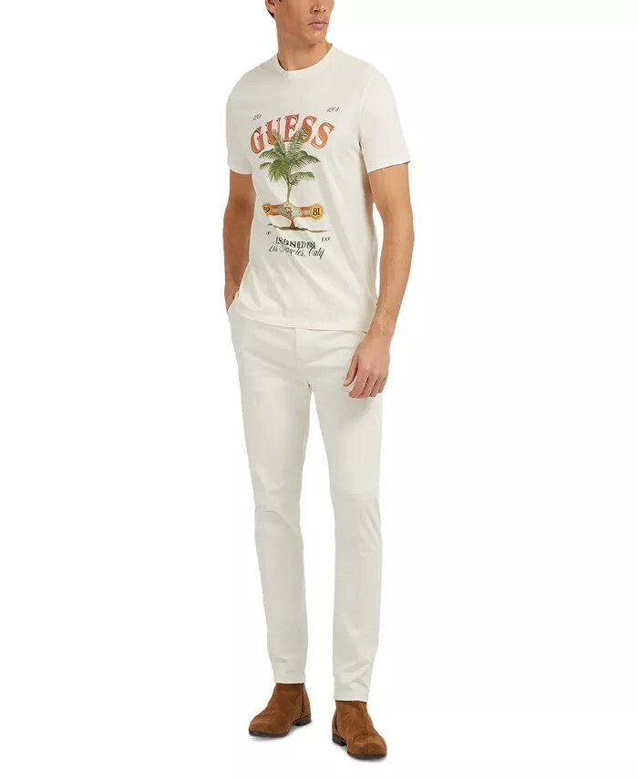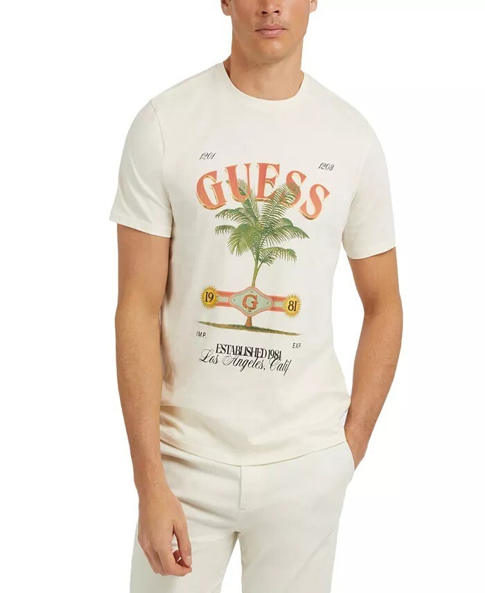 Guess Men's Palm Tree Graphic Short-Sleeve Crewneck T-Shirt - Pearl White-Small