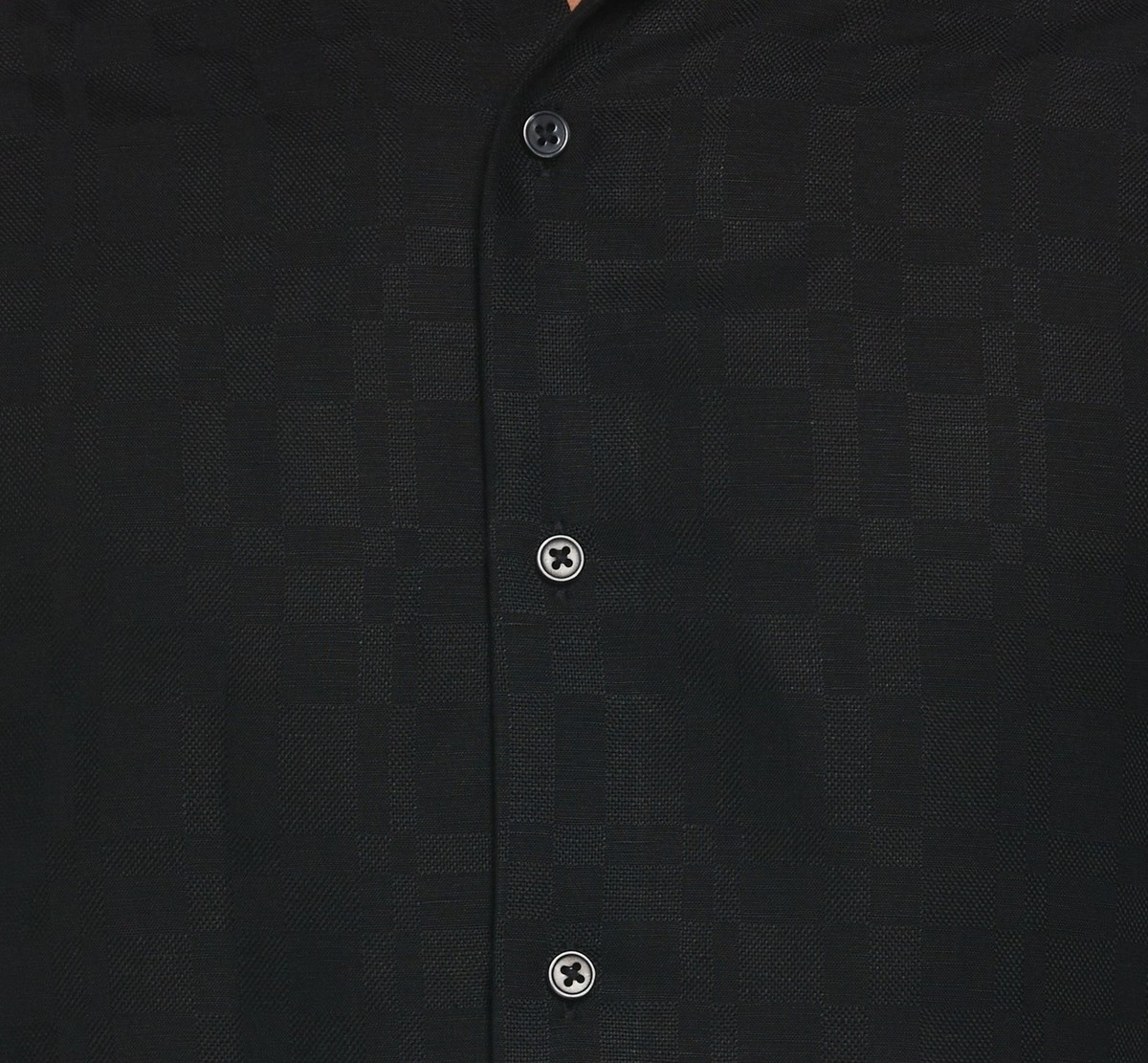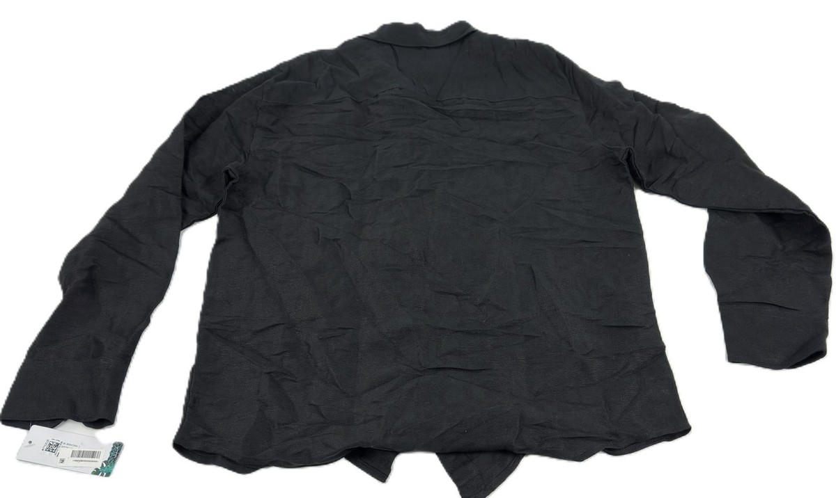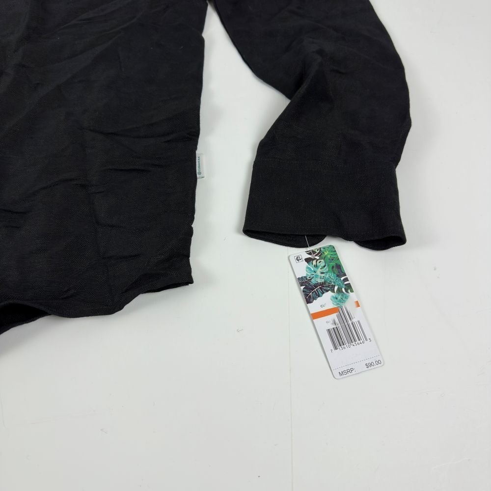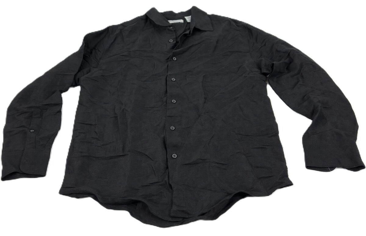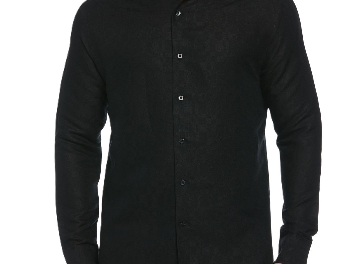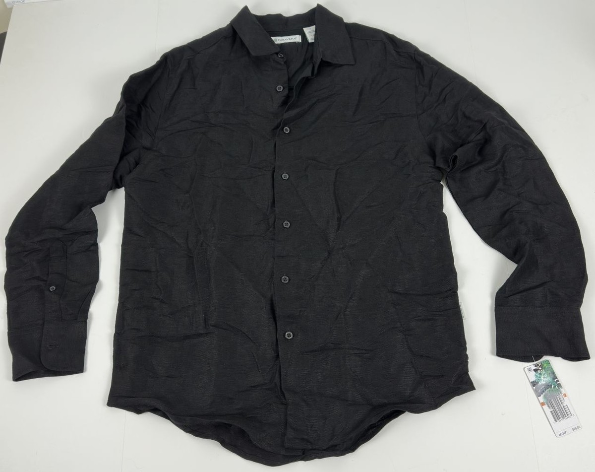 Cubavera Men's Long Sleeve Button Front Linen Blend Dobby Shirt Jet Black-Small