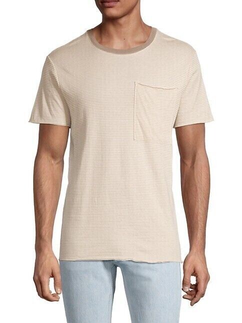 Atm Anthony Thomas Melillo Men's Cotton Double Face Stripe Pocket Tee Wheat-Smal