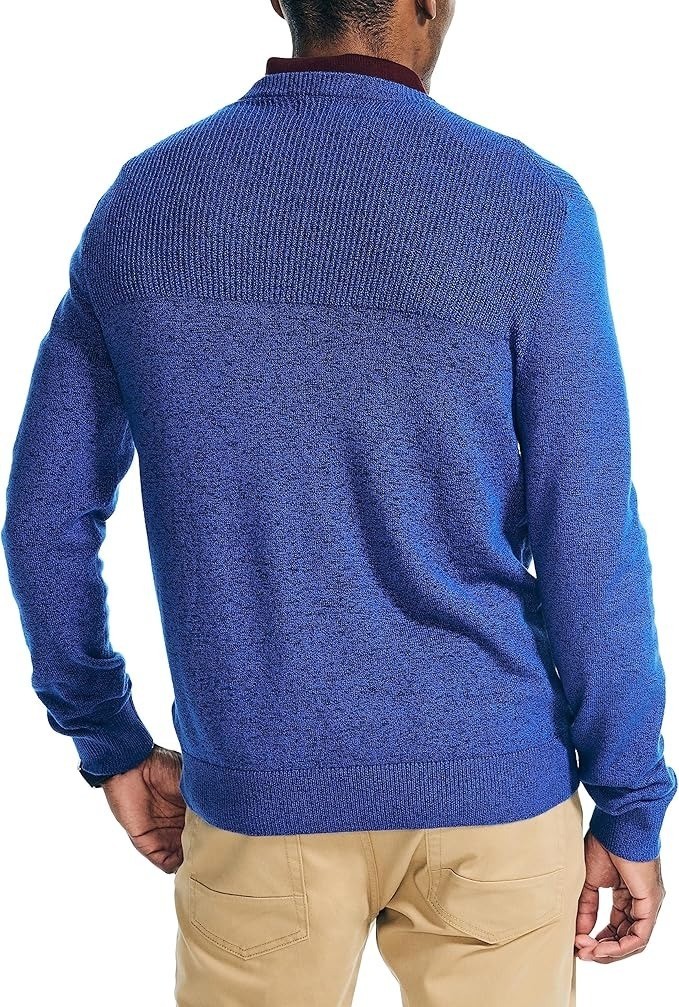 Nautica Men's Sustainably Crafted Textured Crewneck Sweater, Cobalt Blue-Large