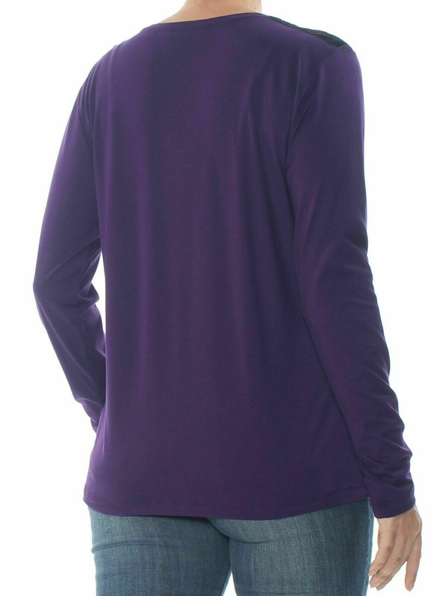 Lauren Ralph Lauren Women's Purple Velvet-Trim Chest Pocket T-Shirt- XS