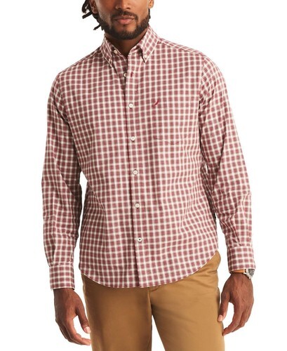 Nautica Men's Classic-Fit Wrinkle-Resistant Plaid Button-Up Shirt Naut Red-Small