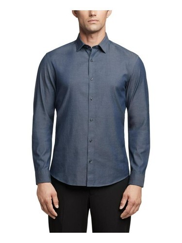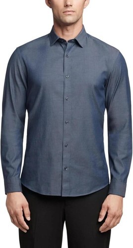 Calvin Klein Men's Washed Denim Stretch Slim Fit Dress Shirt Dark Denim-16 32/33