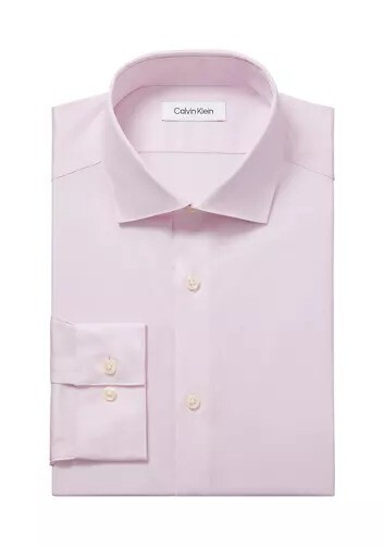 The Calvin Klein steel dress shirt is engineered for performance. High-tech wrinkle-free stretch fabric requires less ironing, while wicking properties pull away moisture for cool, dry comfort. A slim fit delivers a tailored look that defines refinement.