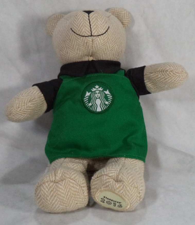 Description: This plush teddy bear is a unique collectible advertising item created by the Starbucks brand. This plush bear features a multi-color design and is themed around coffee and tea, making it a perfect addition to any Starbucks enthusiast's collection. With its original creation date of 2016 and pristine condition, this Bearista bear is a must-have for fans of the popular coffee chain.