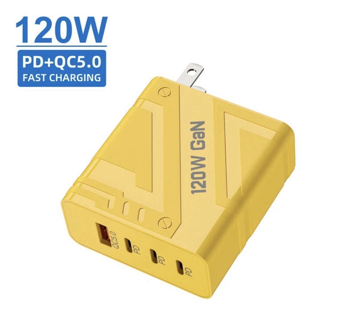 120W GaN 4-Port Wall Charger, 3× USB-C PD + USB-A QC Fast Charging