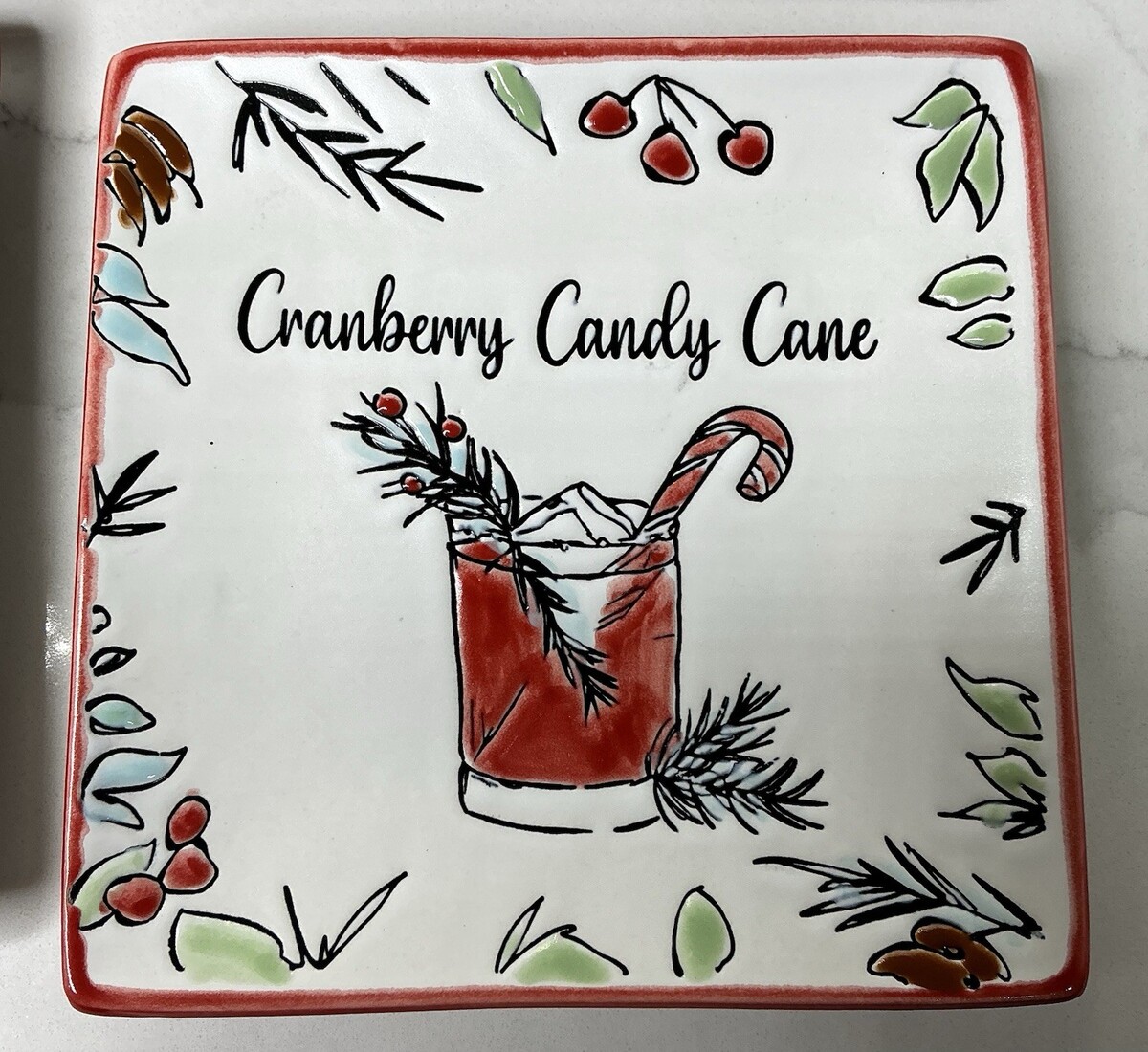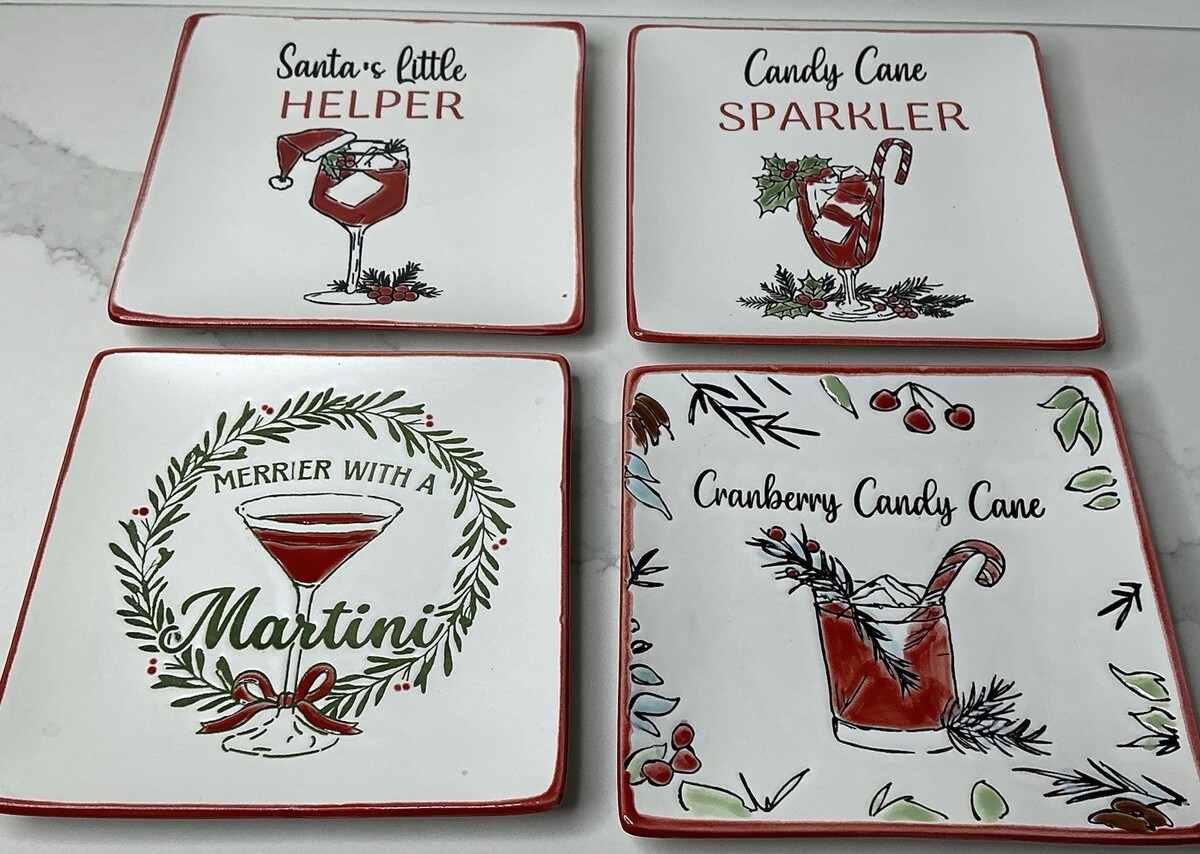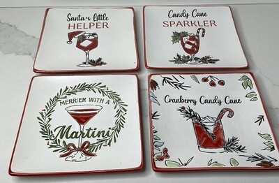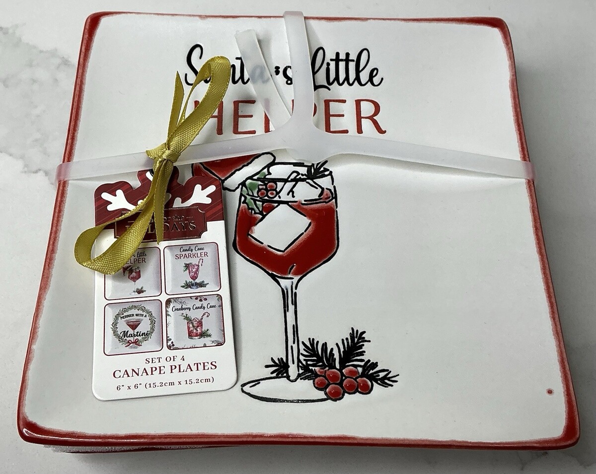 4 Global Design Christmas Cocktail Square Plates Ceramic New