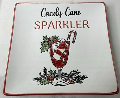 The product is a set of four square ceramic plates, designed for serving cocktails during the Christmas season. These solid-colored plates have a festive theme and are dishwasher safe for easy cleaning. Made in Japan, they are perfect for entertaining adults and adding a touch of elegance to your holiday table setting.