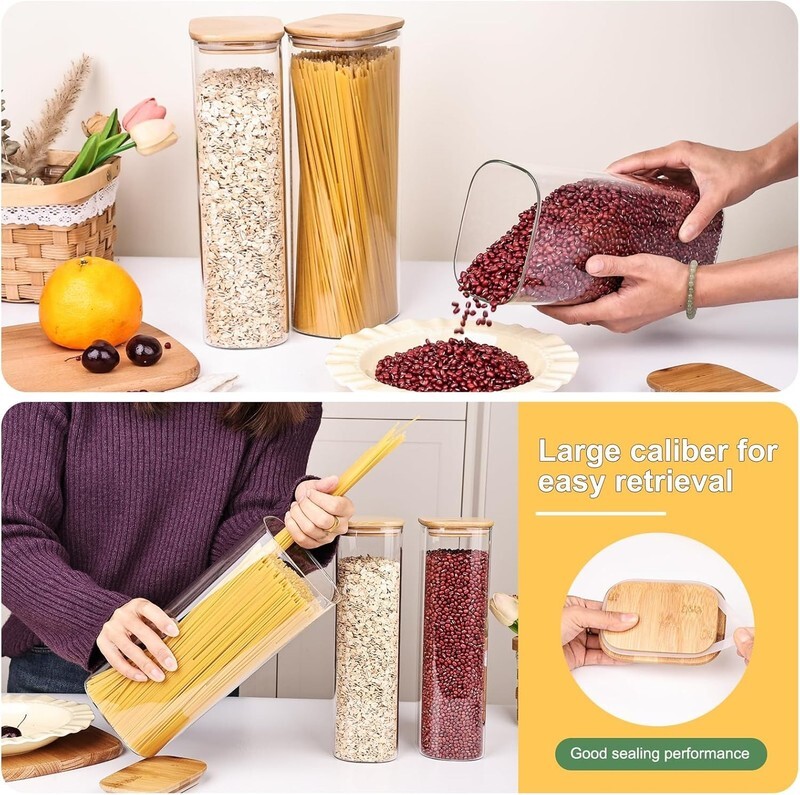 Elegant and Practical Design: Elevate your kitchen organization with the sleek, square design of our Glass Food Storage Jars. These jars aren't just functional ? they're also a stylish addition to your countertop or pantry. The clear glass allows you to easily identify the contents, making meal prep and cooking a breeze.
