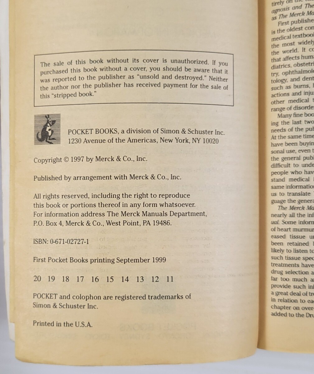 *L) Merck Manual of Medical Information by Robert Berkow (1999, Pocket Books)