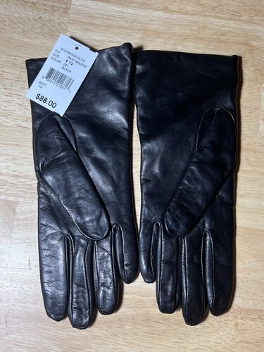 Size 6 1/2 NEW Bloomingdale's Black Leather Gloves with Cashmere Lining $88