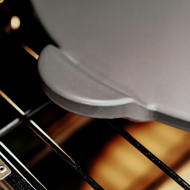 Glazed surface is easier to clean and does not absorb fat and oil like a traditional pizza stone; Convenient handles allow for easy handling