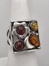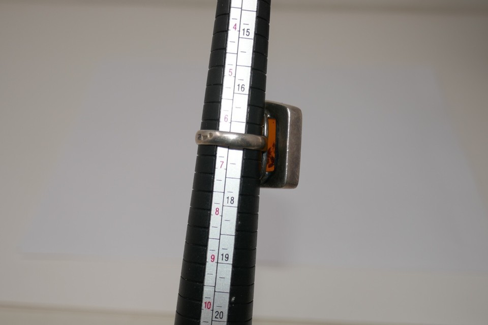 Sterling Silver 925 Modernist Amber Ring Size 6.50