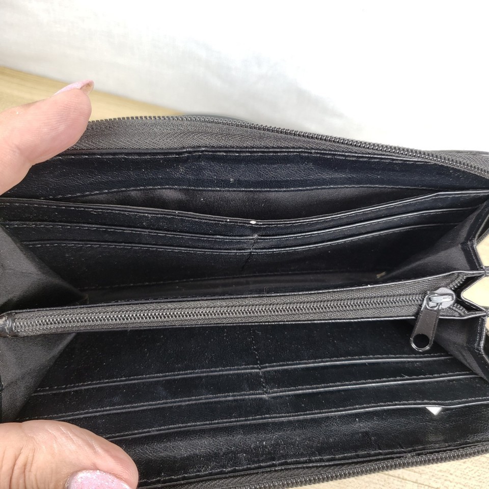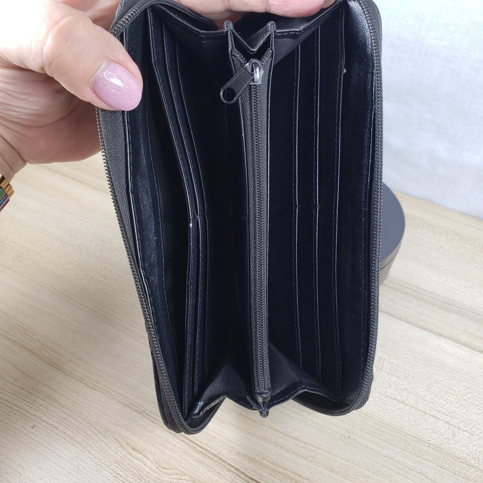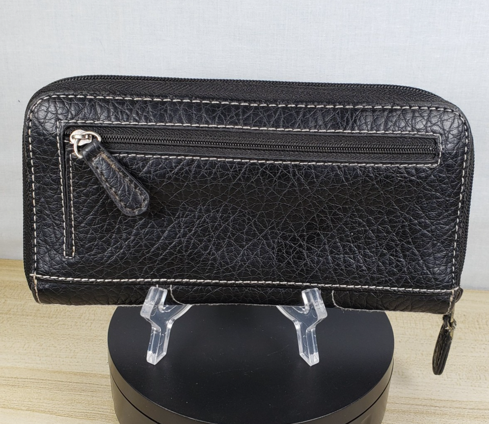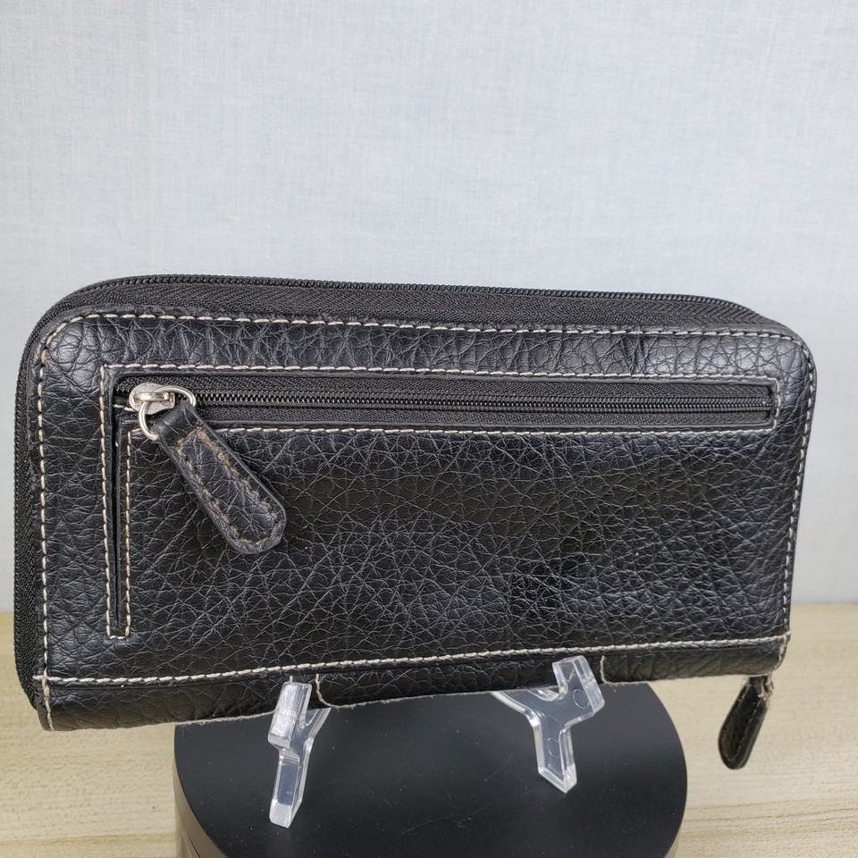Vintage Nine West Paxtin Dark Chocolate Brown Leather Stitched Zip Around Wallet
