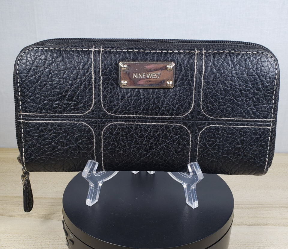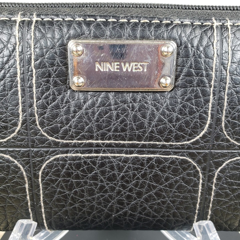 Vintage Nine West Dark Chocolate Brown Leather Stitched Zip Around Wallet