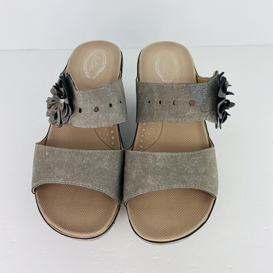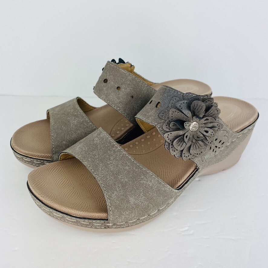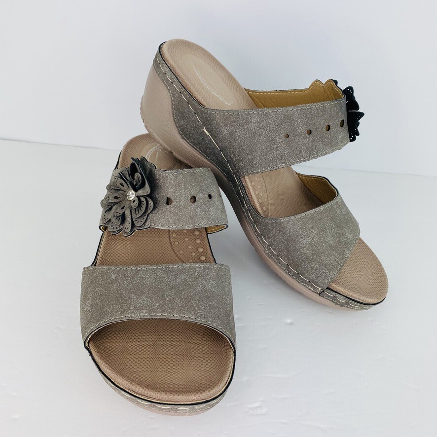 Italina Wedge Gray 7 Sandal Slip On Flower and 50 similar items