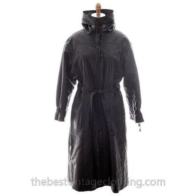 VTG 70s Friitala Finland Black Leather Long Coat Bonnie Cashin Style S-M