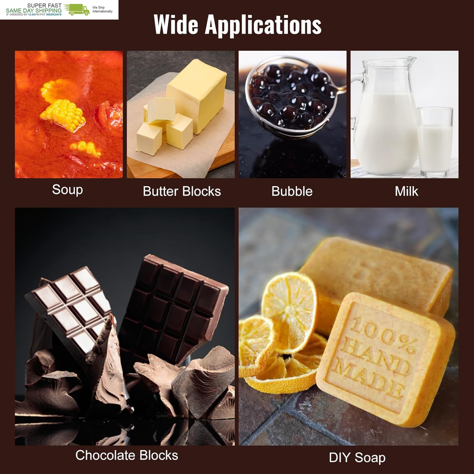 Versatile Use: This professional heated chocolate melter is suitable for heating and melting chocolate blocks, butter blocks, cream, milk, and more. It is suitable for various occasions, such as family gatherings, hotel restaurants, and bakeries.