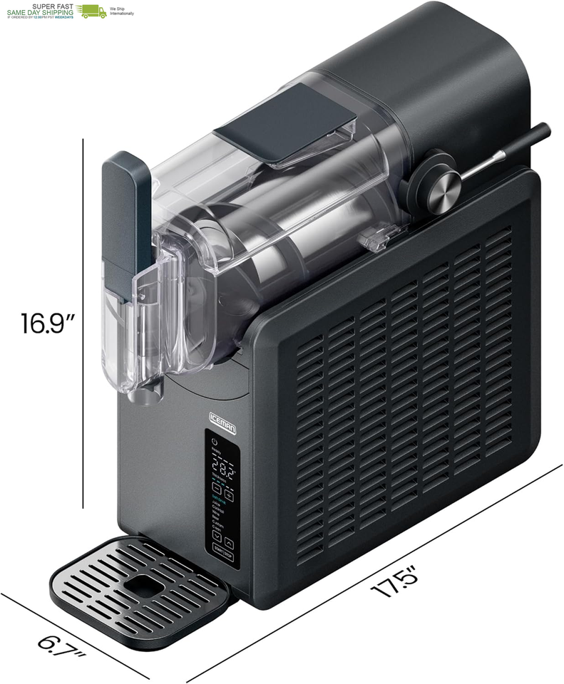 EASY TO DISPENSE: No scoops or spoons needed for this drink maker. Gently pull on the lever and this 48-ounce frozen drink machine dispenses directly into your cup and enjoy up to eight servings of your favorite frozen drinks. The slushy machine is under 7 inches wide and 17.5 inches long to fit anywhere on your countertop.