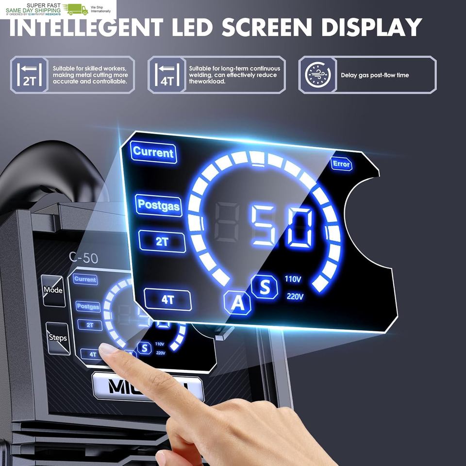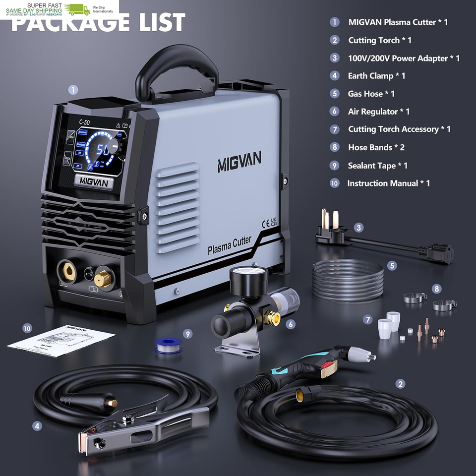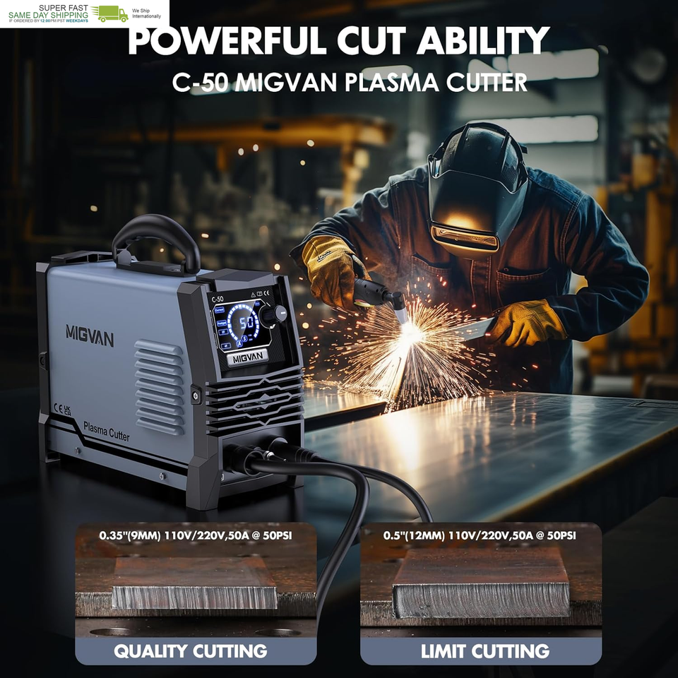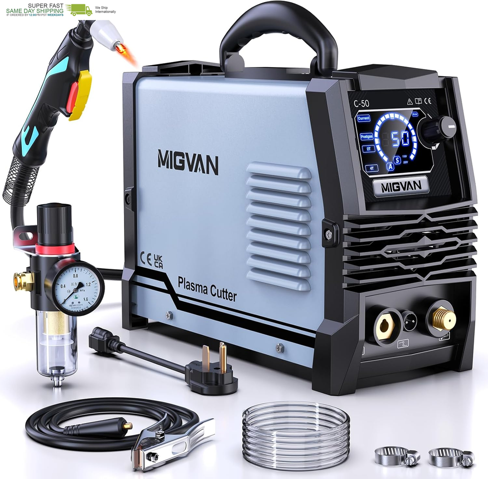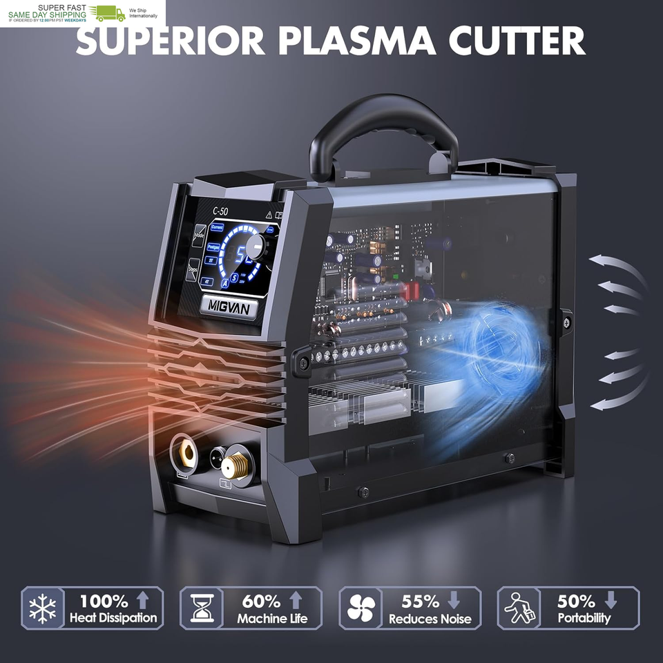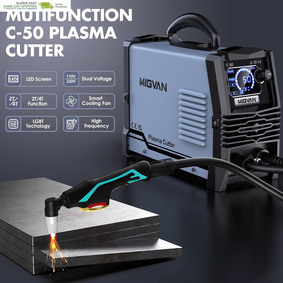 50Amps Plasma Cutter, Large LED Screen Display, MIGVAN Cutter Machine 110/220V D