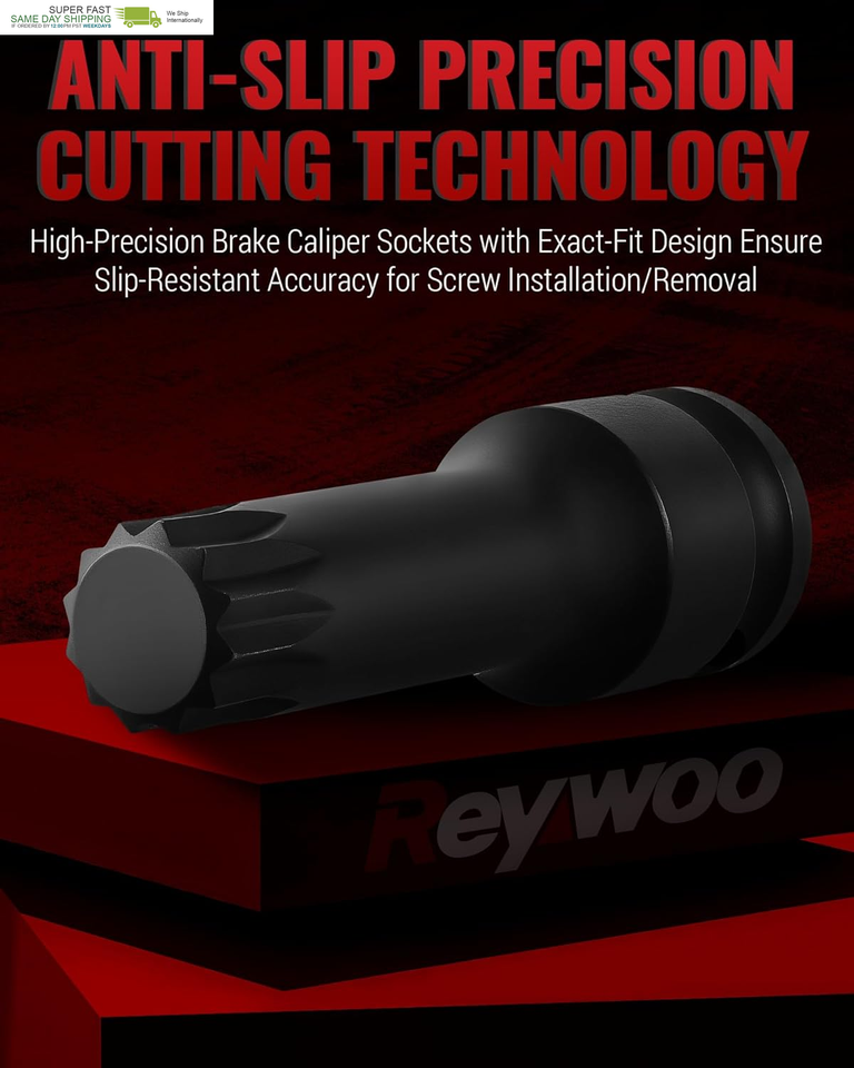 Precision Design: Brake caliper sockets feature precision-milled tips for zero-play grip on caliper screws, preventing stripped screws. Anti-slip geometry eliminates tool slippage during high-torque removal/installation