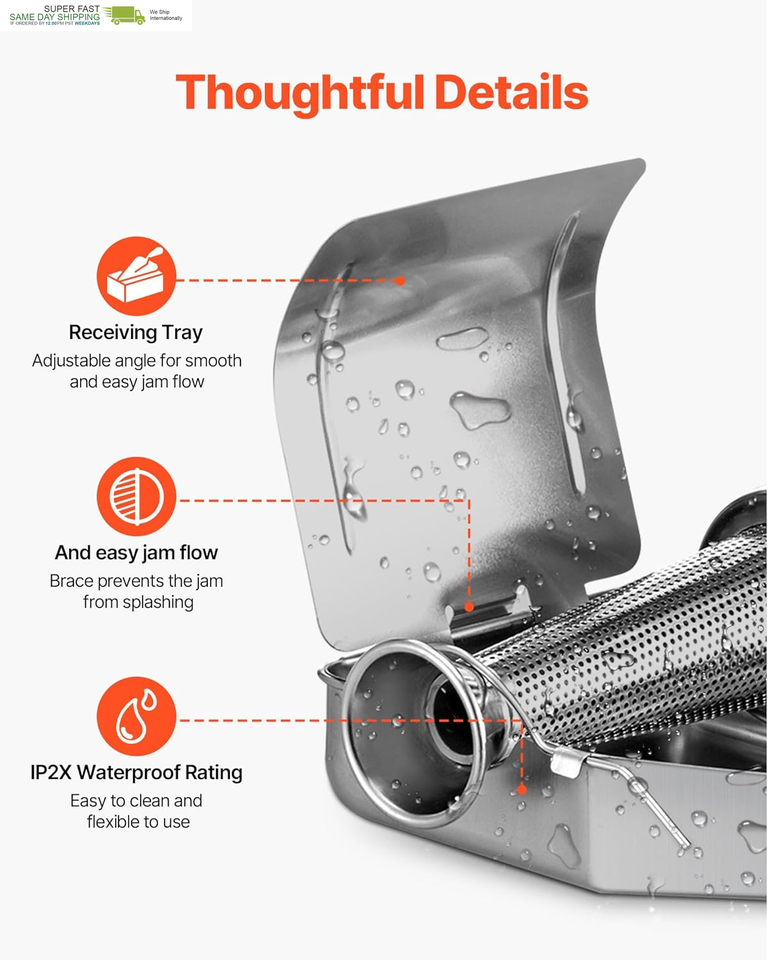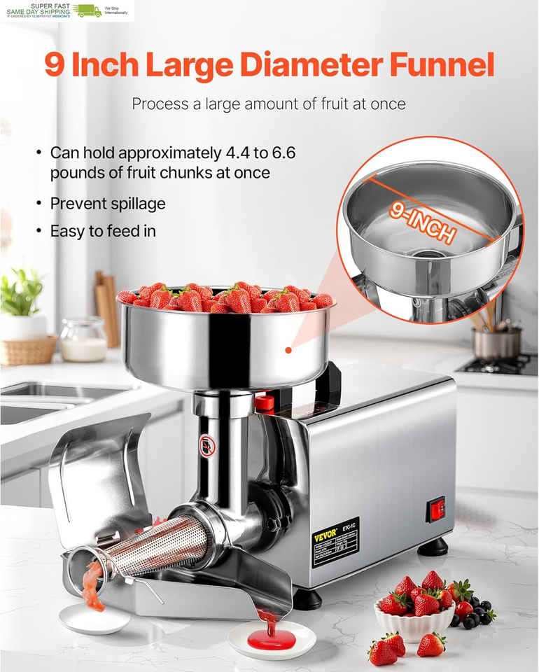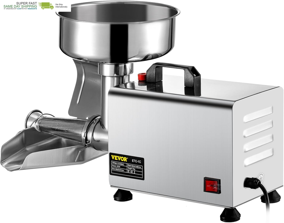 EASY CLEANING QUIET: Able to operate with low noise; with a waterproof rating of level II, this tomato sauce maker is easy cleaning.