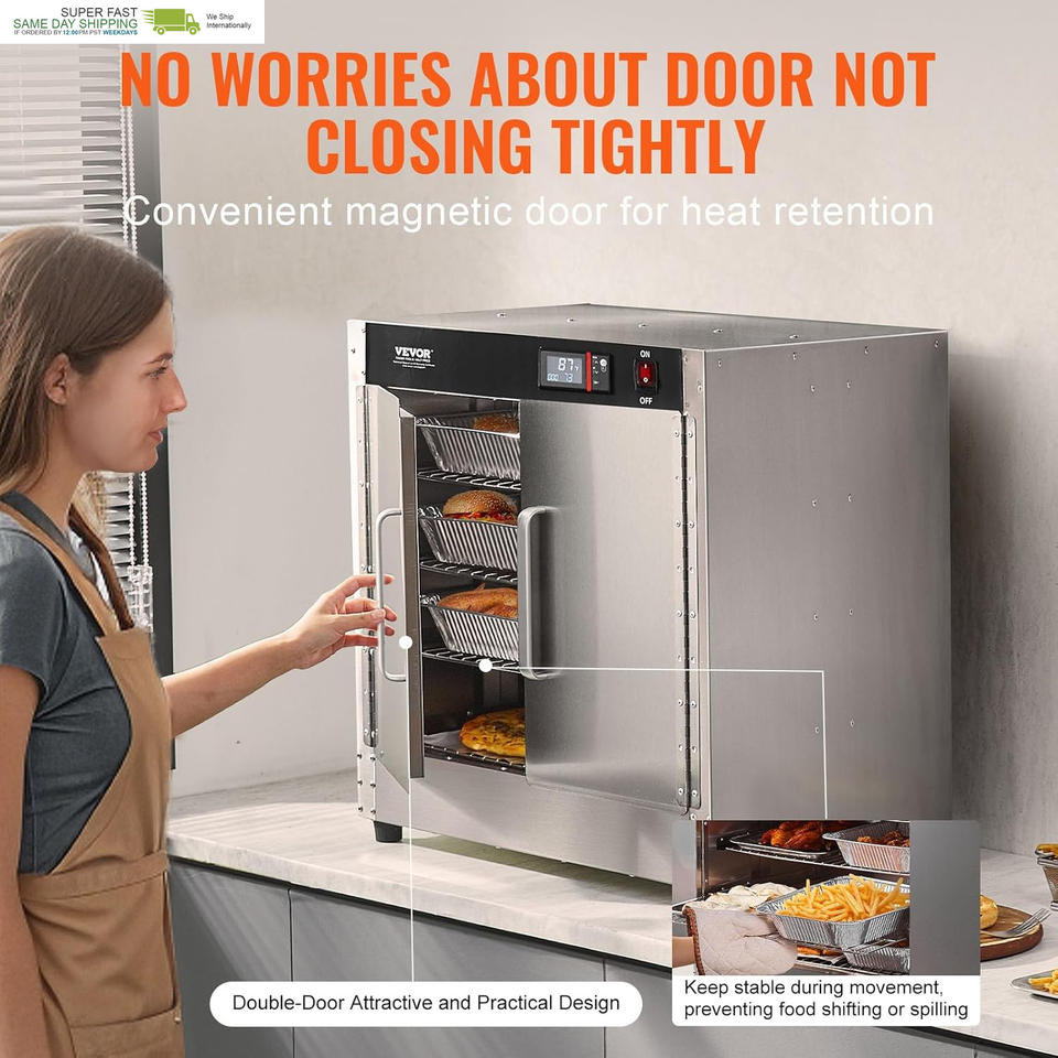 Sturdy and Durable Construction: Made of thickened 201 stainless steel, this hot box is strong and resistant to deformation. The convenient magnetic door ensures a tight seal to retain heat. The stable design allows easy transitions from countertop to floor without compromising security or stability.