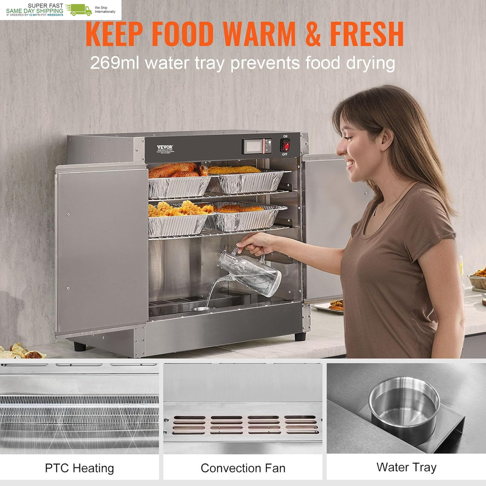 Our food warmer cabinet provides consistent temperature, keeping dishes warm and fresh without drying out, making your delicious food look like freshly cooked food.