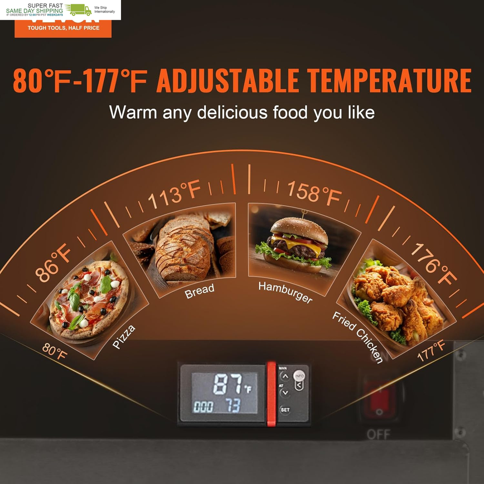 Keep Warm for a Long Time: The commercial hot box food warmer cabinet features an adjustable temperature range of 80?-177? with rapid heating and long-lasting warmth. Real-time temperature tracking and simple operation make it perfect for storing delicious, juicy cooked meats, pasta, crispy fried foods, fermented yogurt, and dried fruits and vegetables.