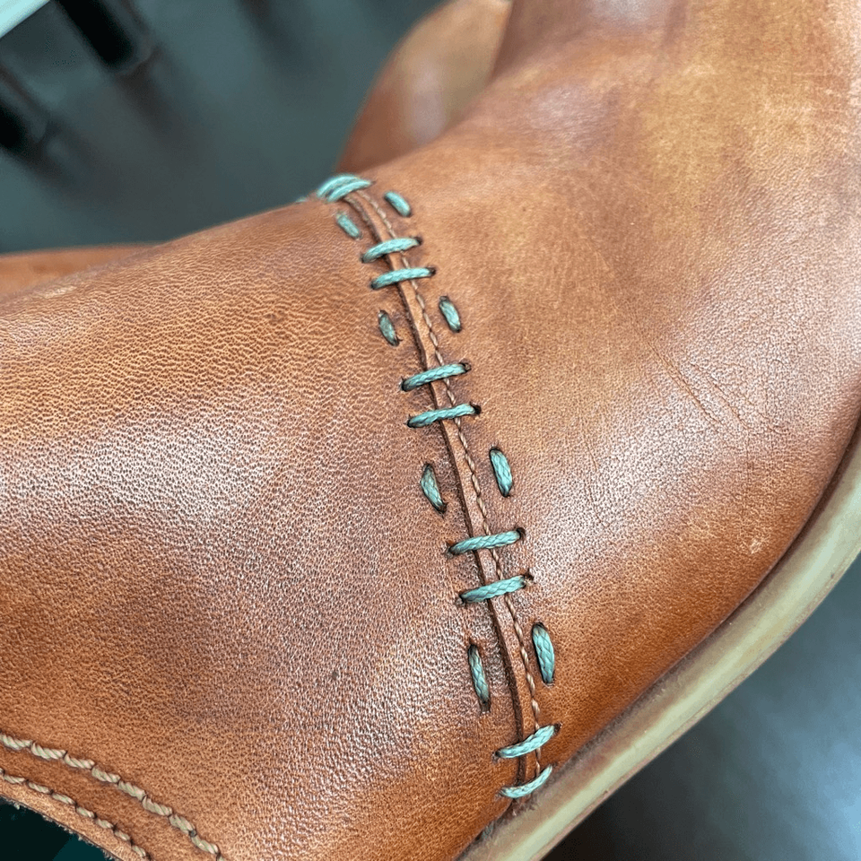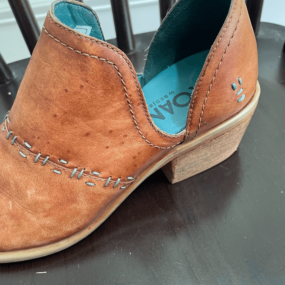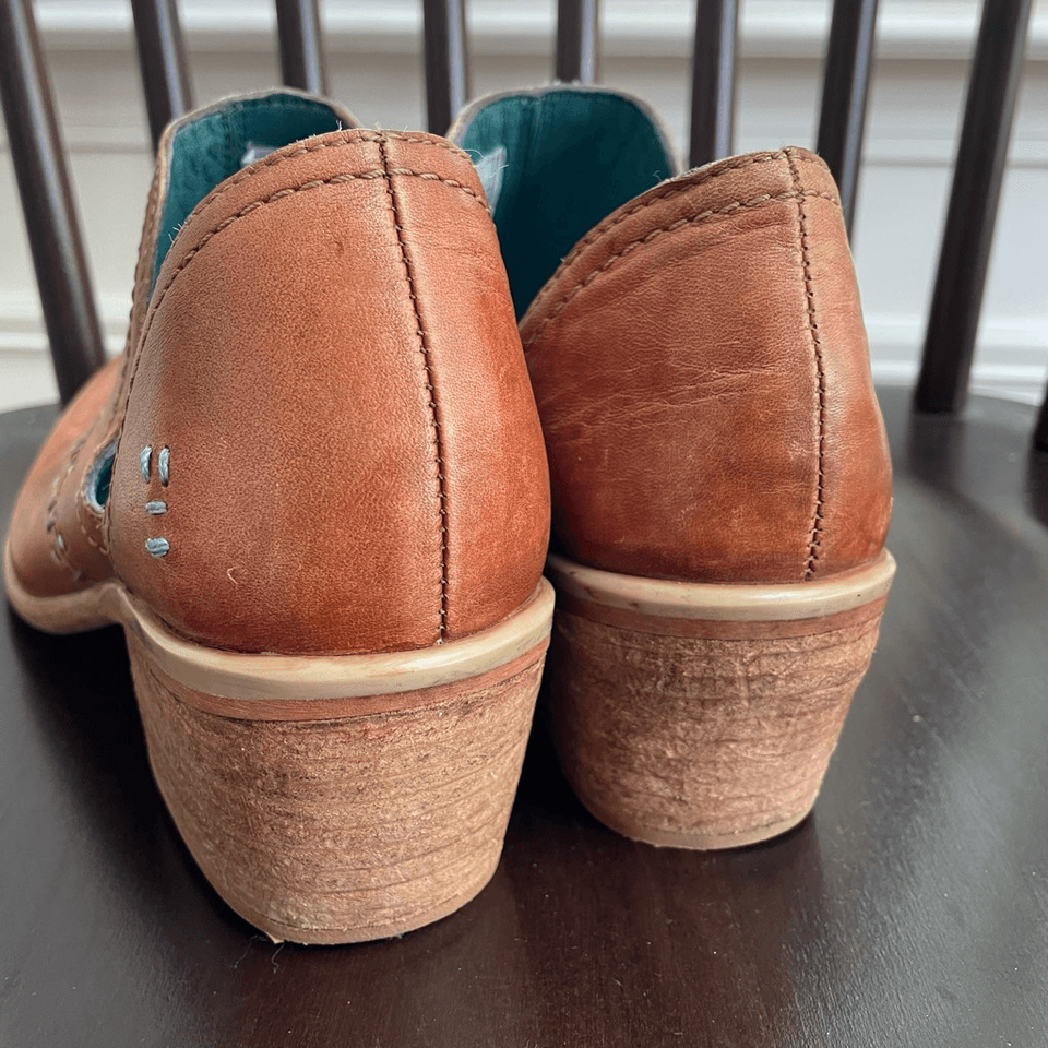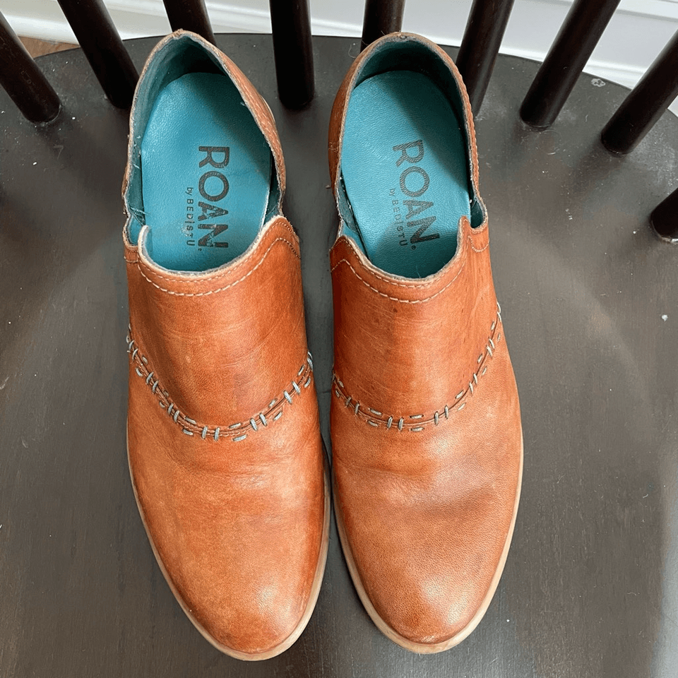 Roan by Bed Stu, my favorite leather boot brand. Spring fresh in Gaze. An excellent leather transitional heeled boot with side vents, and contrast stitching along the upper. Slip on and skip out in the heeled boot with just the right amount of detail. Color is oat pecan. Full grain leather with exclusive hand finishing