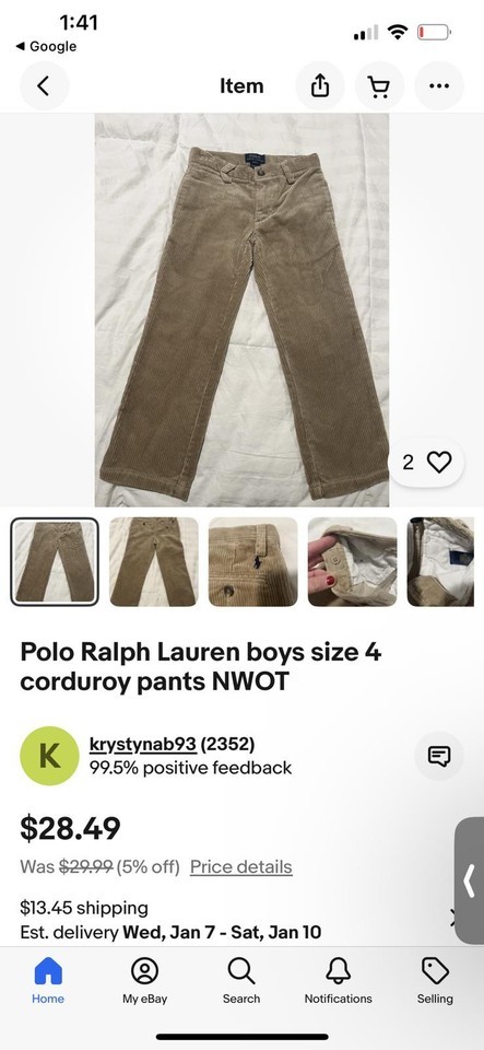 Polo Ralph Lauren Youth Corduroy Pants Size and similar items