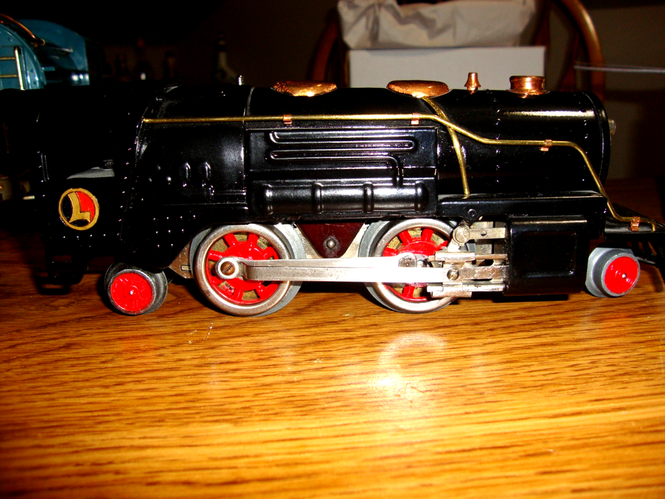 LIONEL PREWAR O GAUGE 258 STEAM LOCOMOTIVE TINPLATE 1930'S WITH TENDER BRASS NICKEL TRIM. Six cars. Great condition. One box car does have a fair amount of paint loss on the roof. I acquired this set one year ago. It was my first Lionel prewar O gauge set, except for my childhood 1955 Lionel set. The previous owner said it was on display only, for the last 35 years. Some pieces were likely restored many years ago, while others may be original, but I do not have the expertise to tell. I have not run it. I did not know when I purchased this set that there were three sizes of O gauge, and have decided to pursue the large size, otherwise I would have considered this a keeper. Sturdy storage boxes are included.