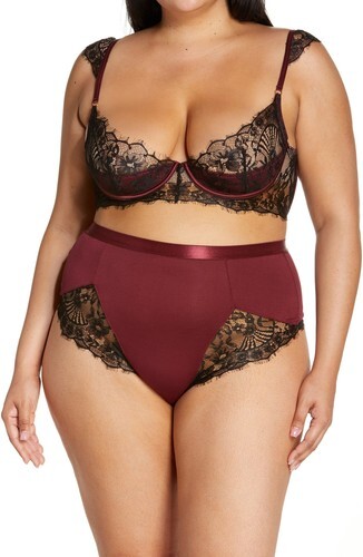 Allure Lace & Mesh Bralette and Panty 2pc Set-Burgundy 2X/3X-Boxed