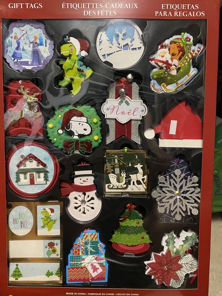 pack Holiday Gift Tags 84 Count Each -60 Gift Tags & 24 Stick Disney Peanuts
