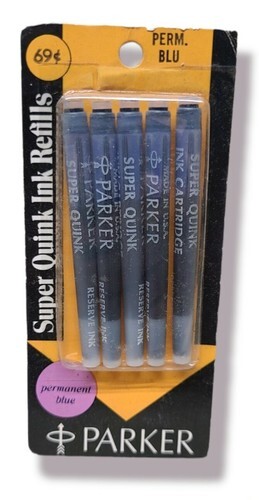 Parker PERMANENT BLUE Super Quink Ink Cartridge Refill - vintage nos