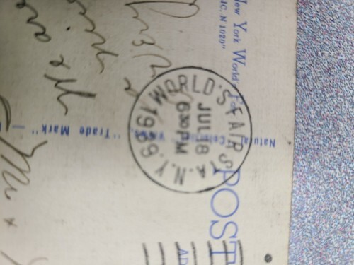 New York World's Fair 1939 Original vintage Postcard -Communications Building. Condition is Used. Has 1 cent George Washington stamp with message hand written on the back. Minor blemish.