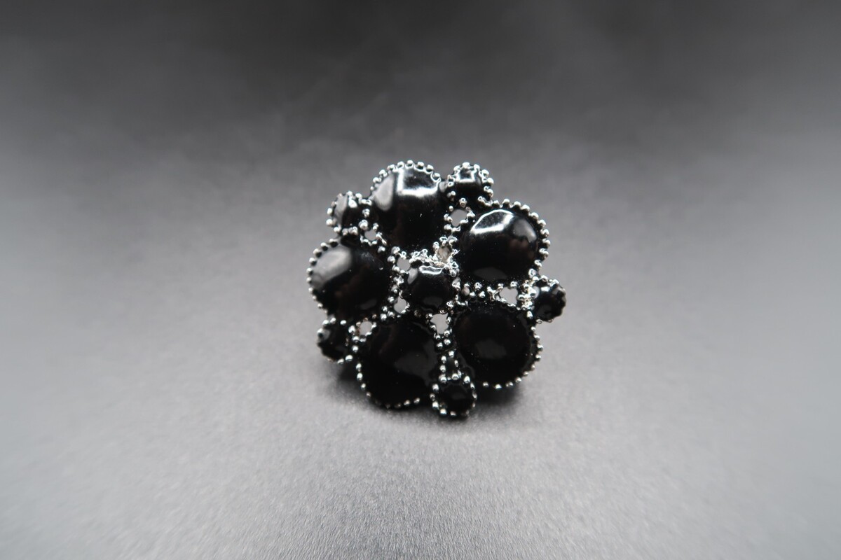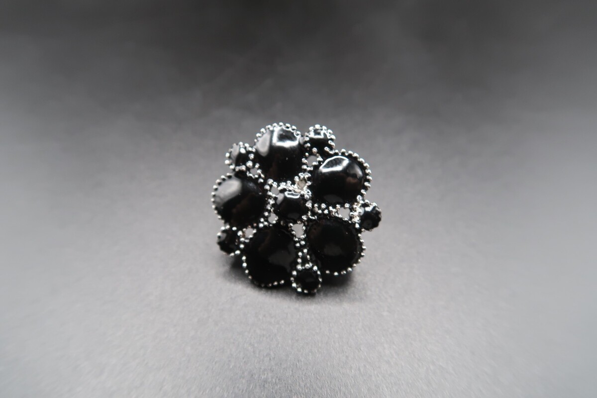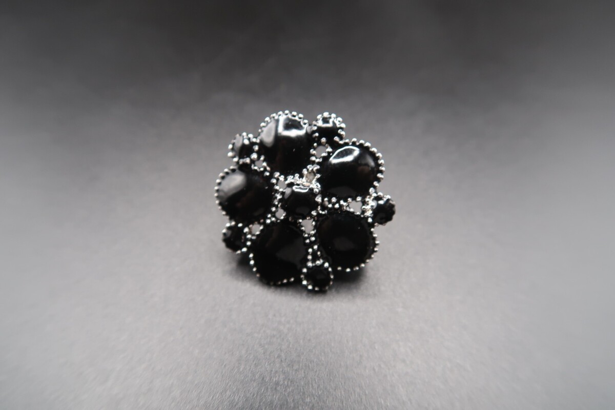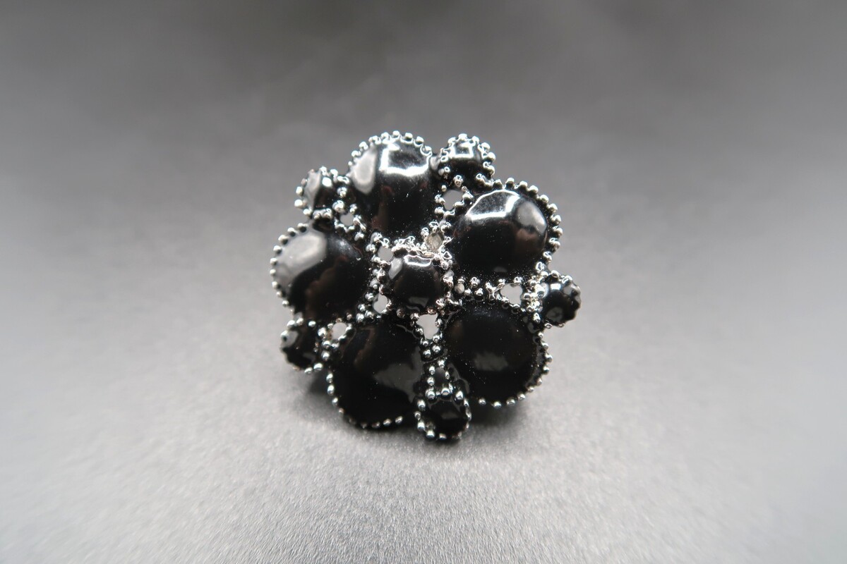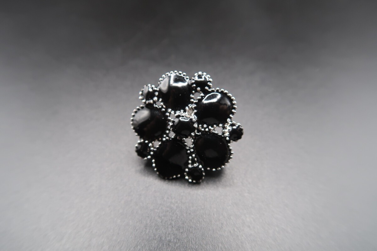 Vtg Silver Tone Black Enamel Flower Brooch 1" Classic Timeless Beautiful