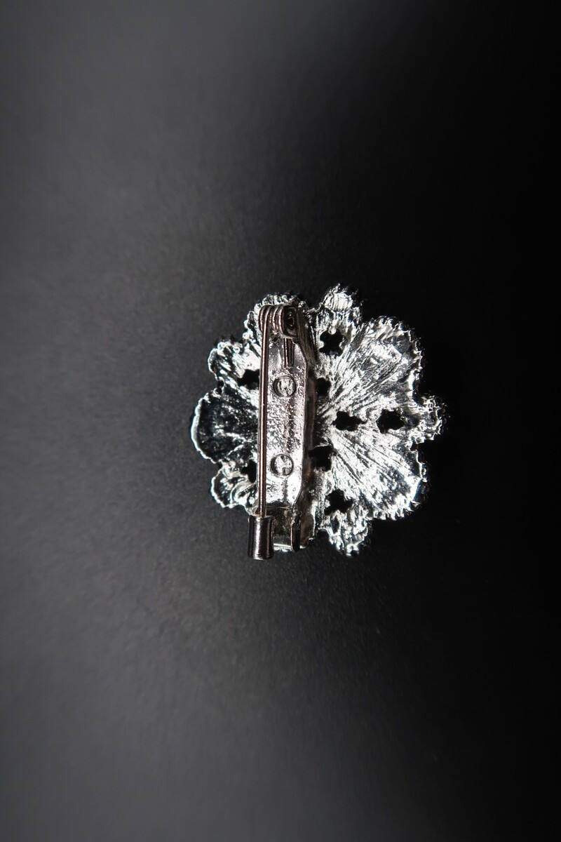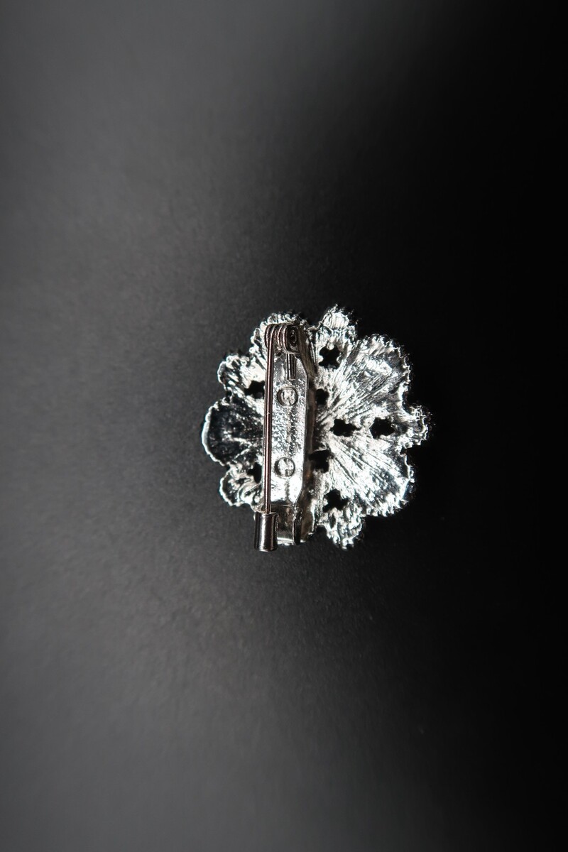 Vtg Silver Tone Black Enamel Flower Brooch and similar items