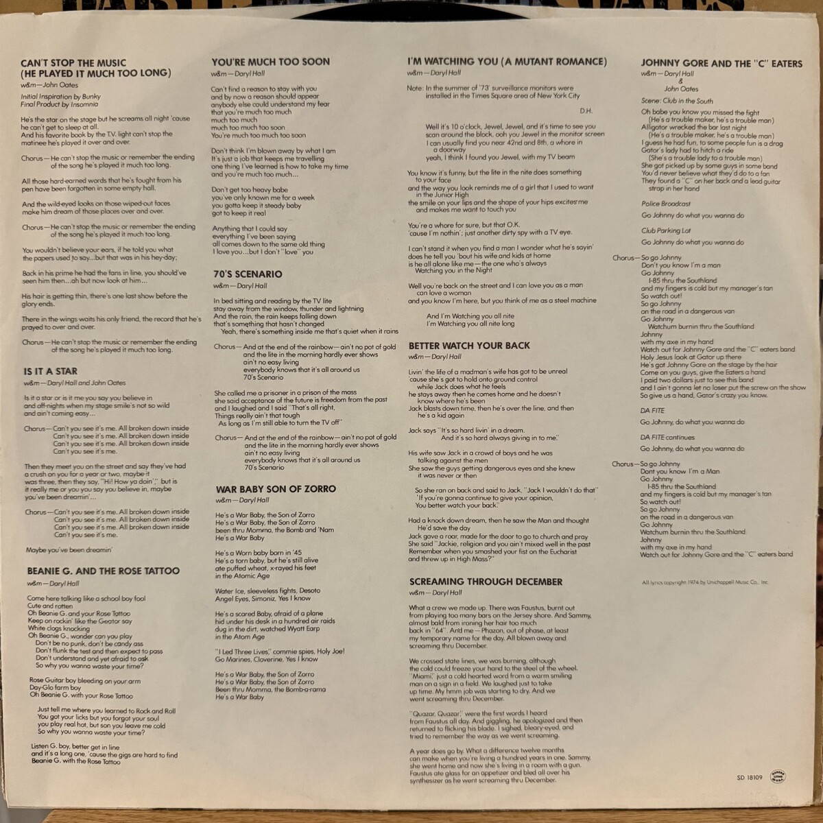 John Oates ? backing vocals, lead vocals (1, 2, 10), keyboards, synthesizers, guitars