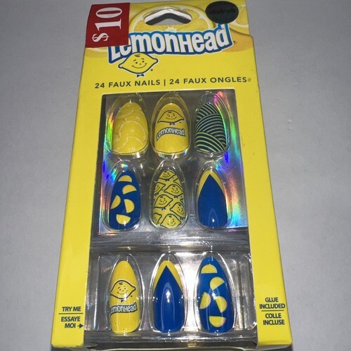24pc Claire's Fake False Press On Glue On vegan lemonade candy yellow, blue almond