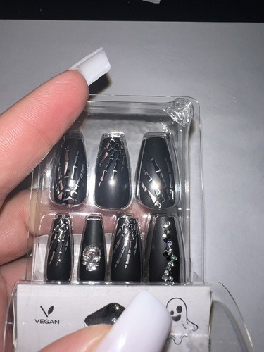 24pc Claire's Fake False Press On Nails Glue On Vegan Black Skeleton Coffin