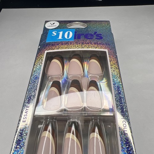24pc Claire's Fake False Press On Nails Glue On Vegan Brown Black French Coffin